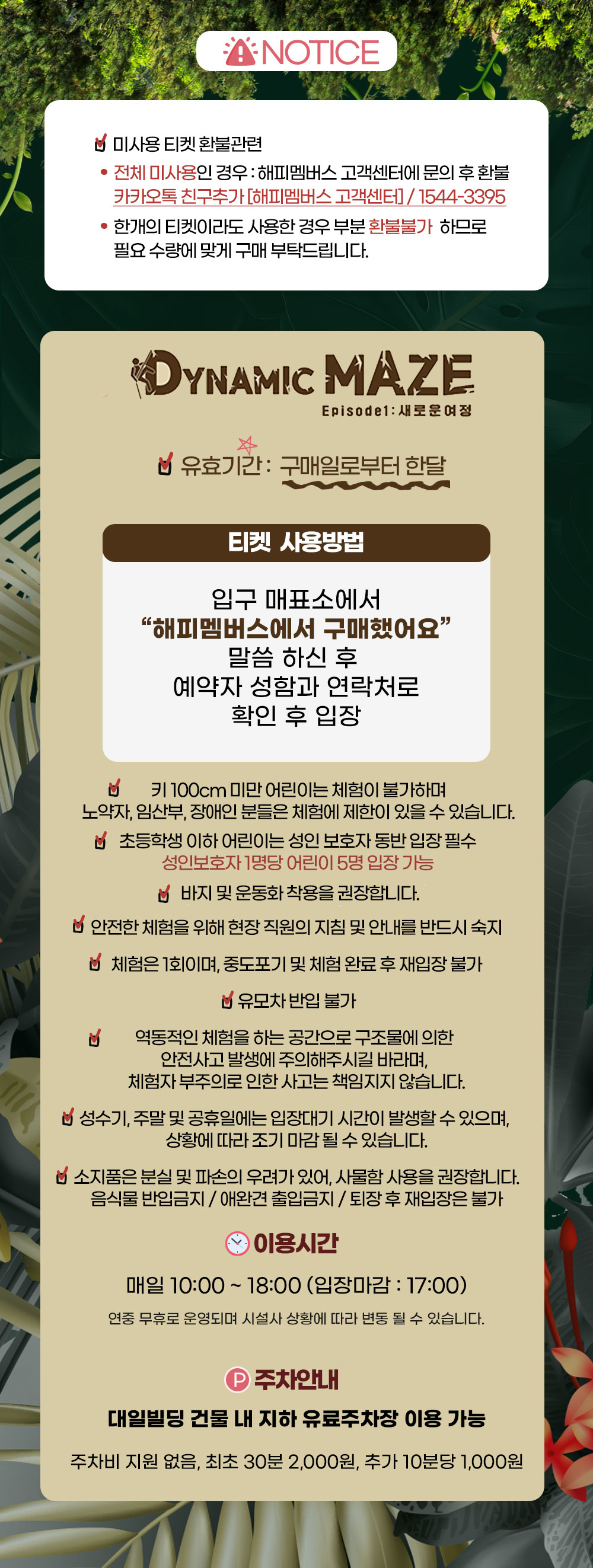 · 입장 및 발권 전 취소 : 결제금액 100% 환불