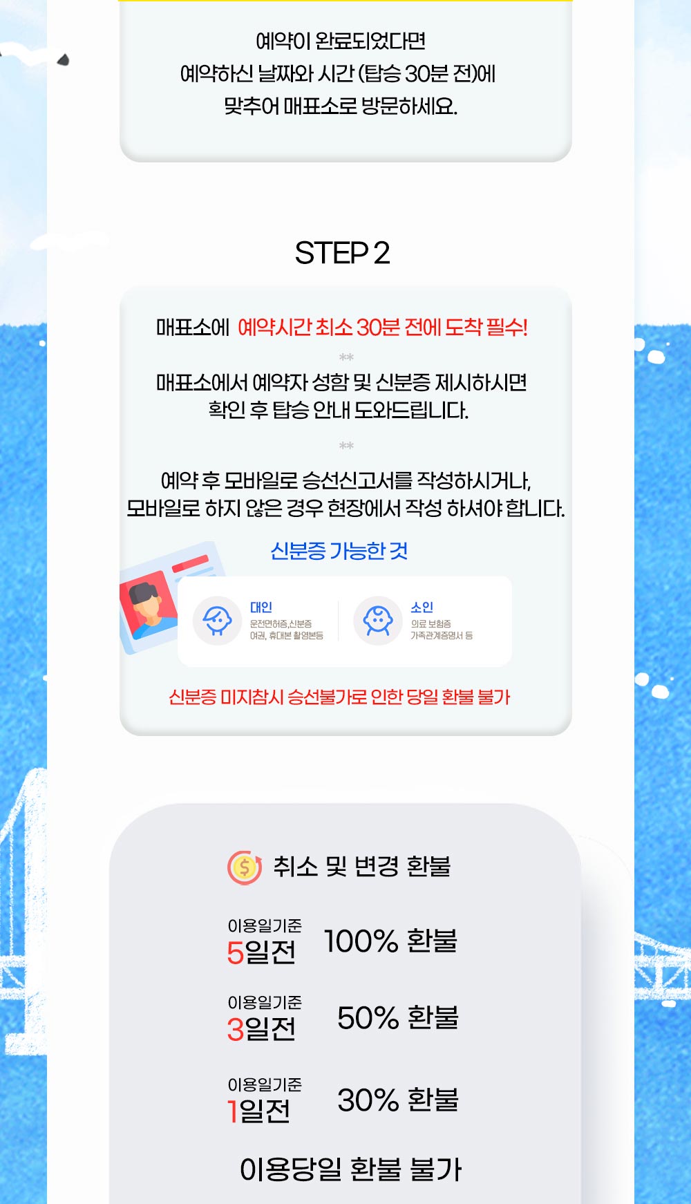 탑승시간 준수 및 신분증을 지참해주세요.
